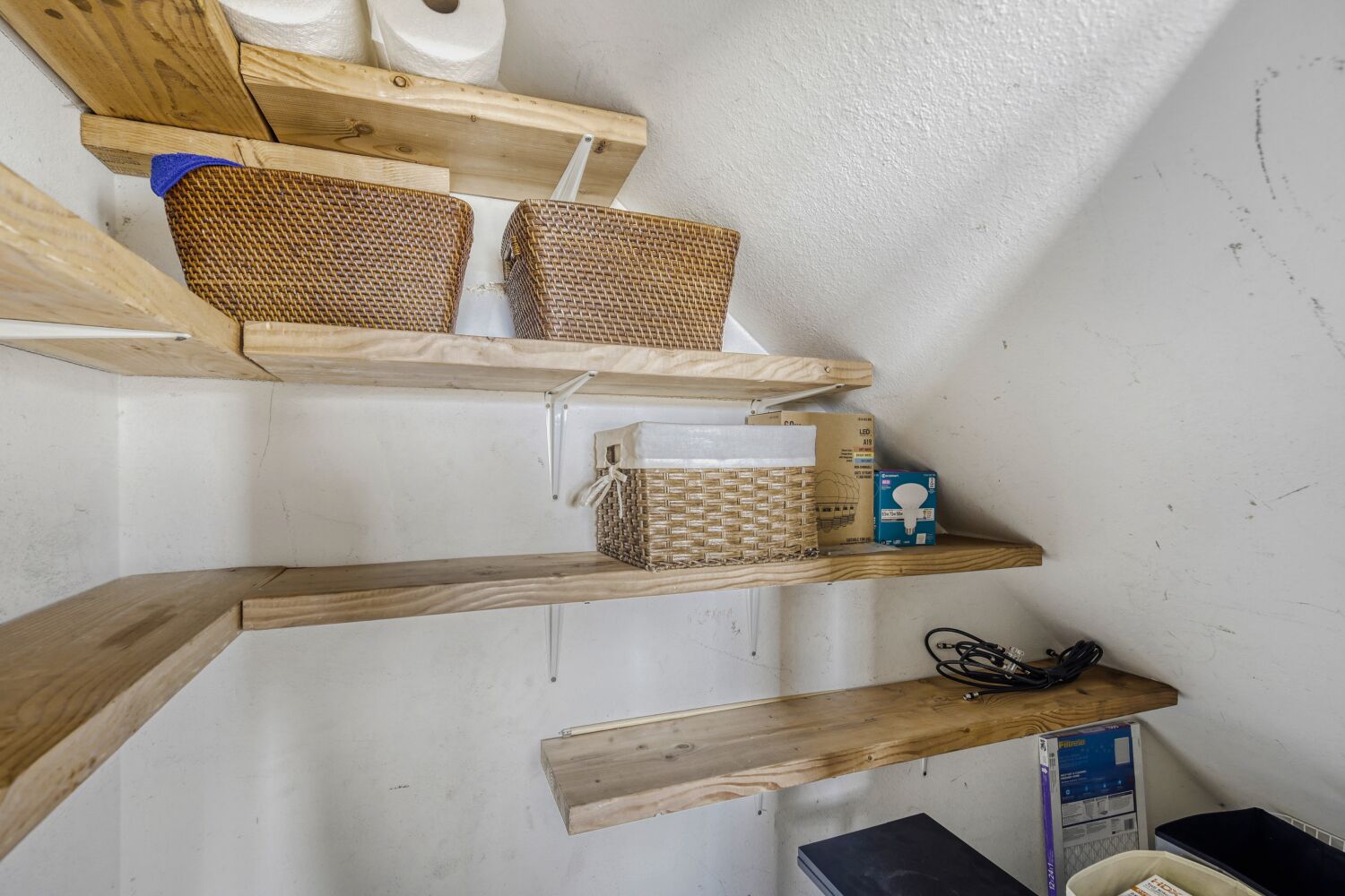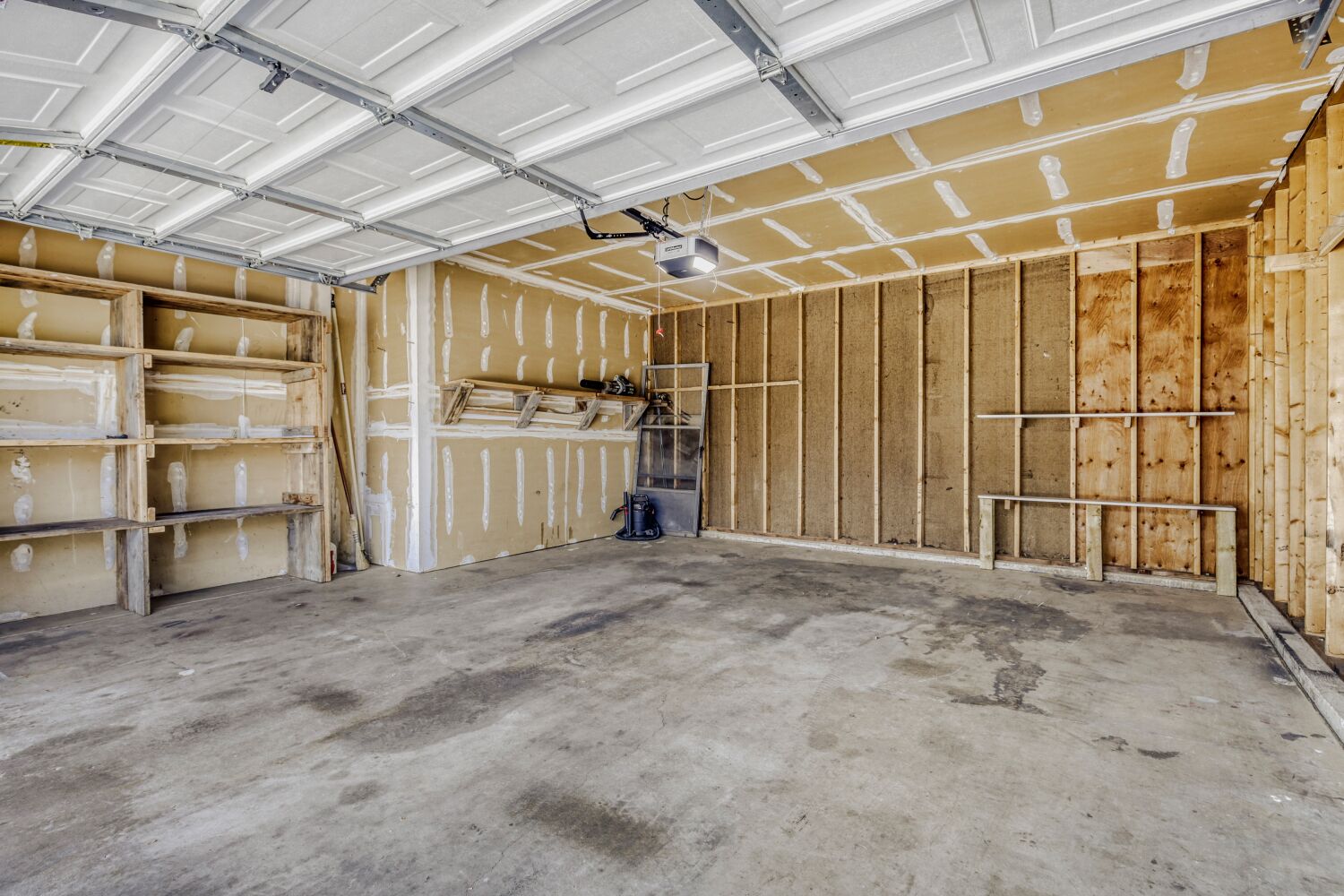 Upstairs includes in-unit laundry, custom-tiled bathrooms, and ample storage. New water heater (Oct 2024). Oversized two-car garage with built-in shelving.